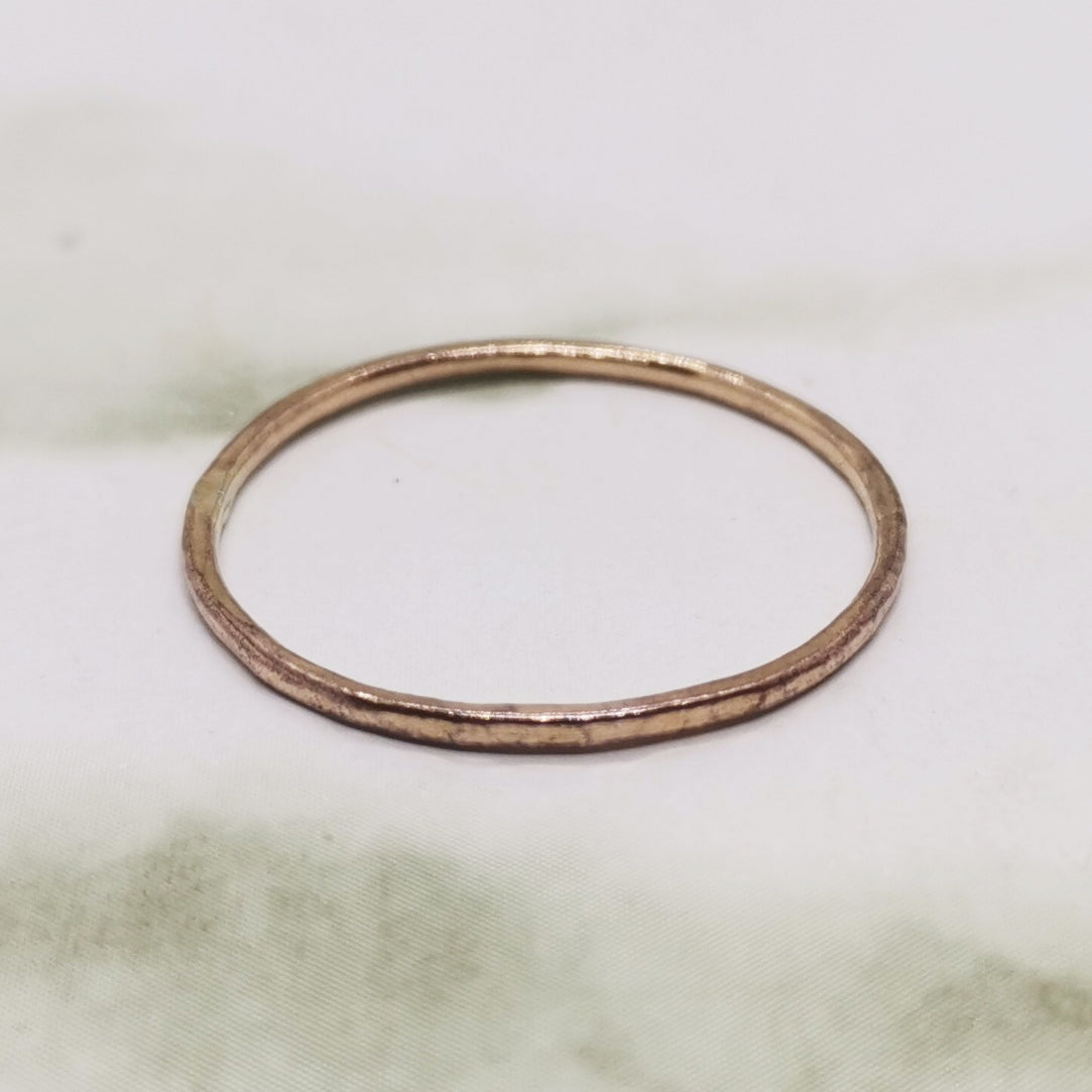 The ring is handcrafted from Copper wire hand-rolled and pulled to 1.2mm round. The texture on the ring is a representation of the light reflecting on water.