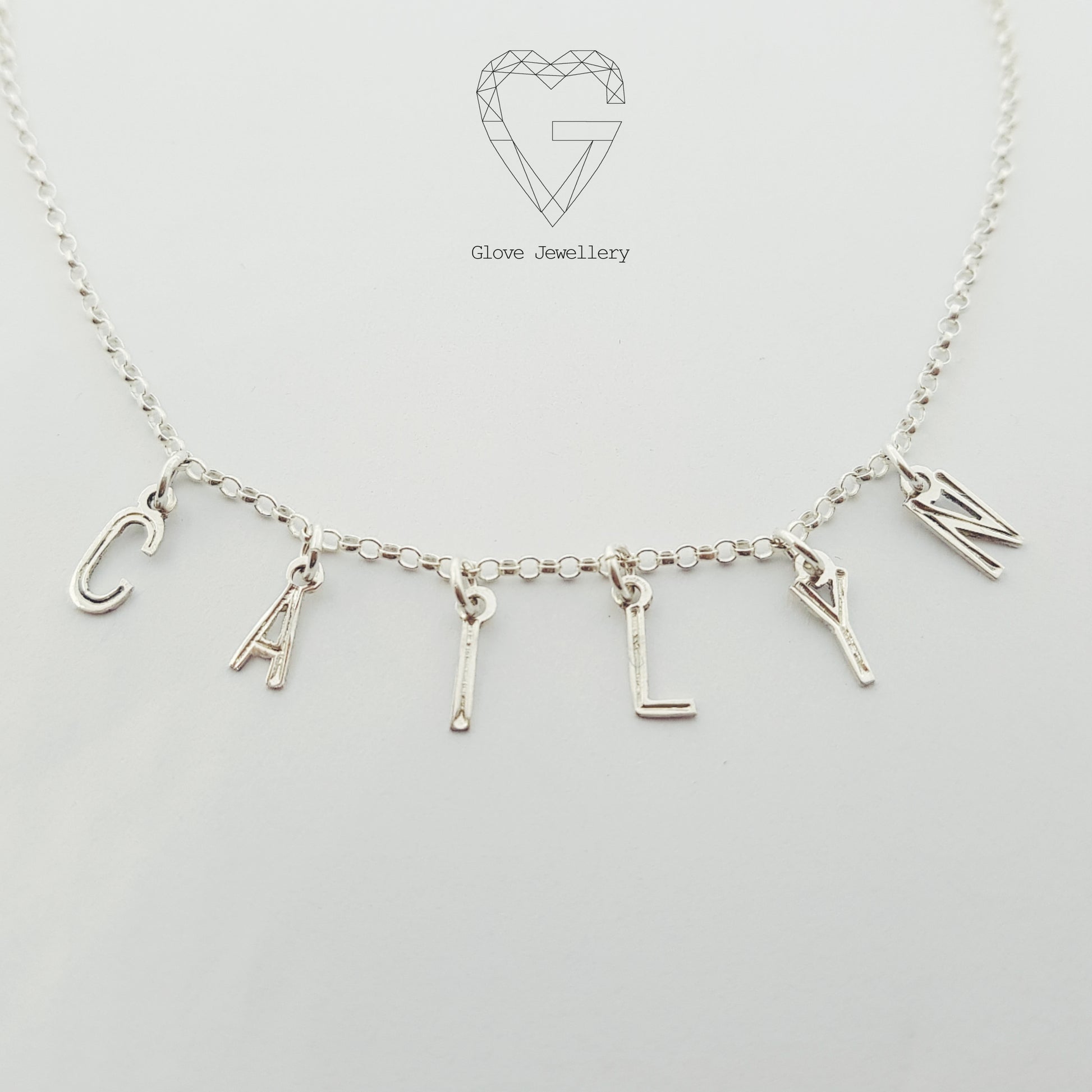 Handcrafted Sterling Silver 6 Bunting Initials Necklace