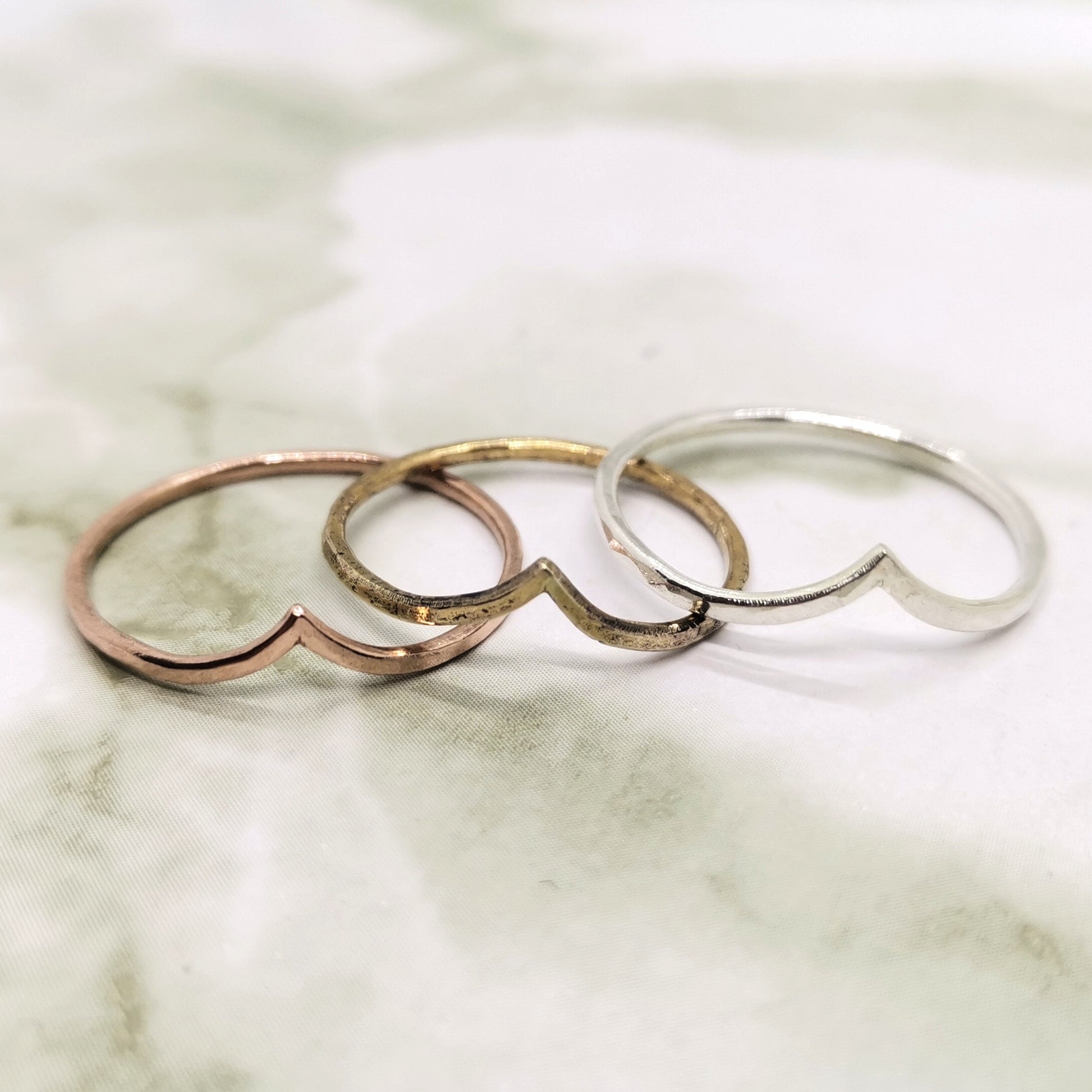 The ring is made in yellow gold plated brass, rose gold plated copper or sterling silver. If you don't know your size don't worry we can help you with that, once you have placed your order we will contact you to determine size.