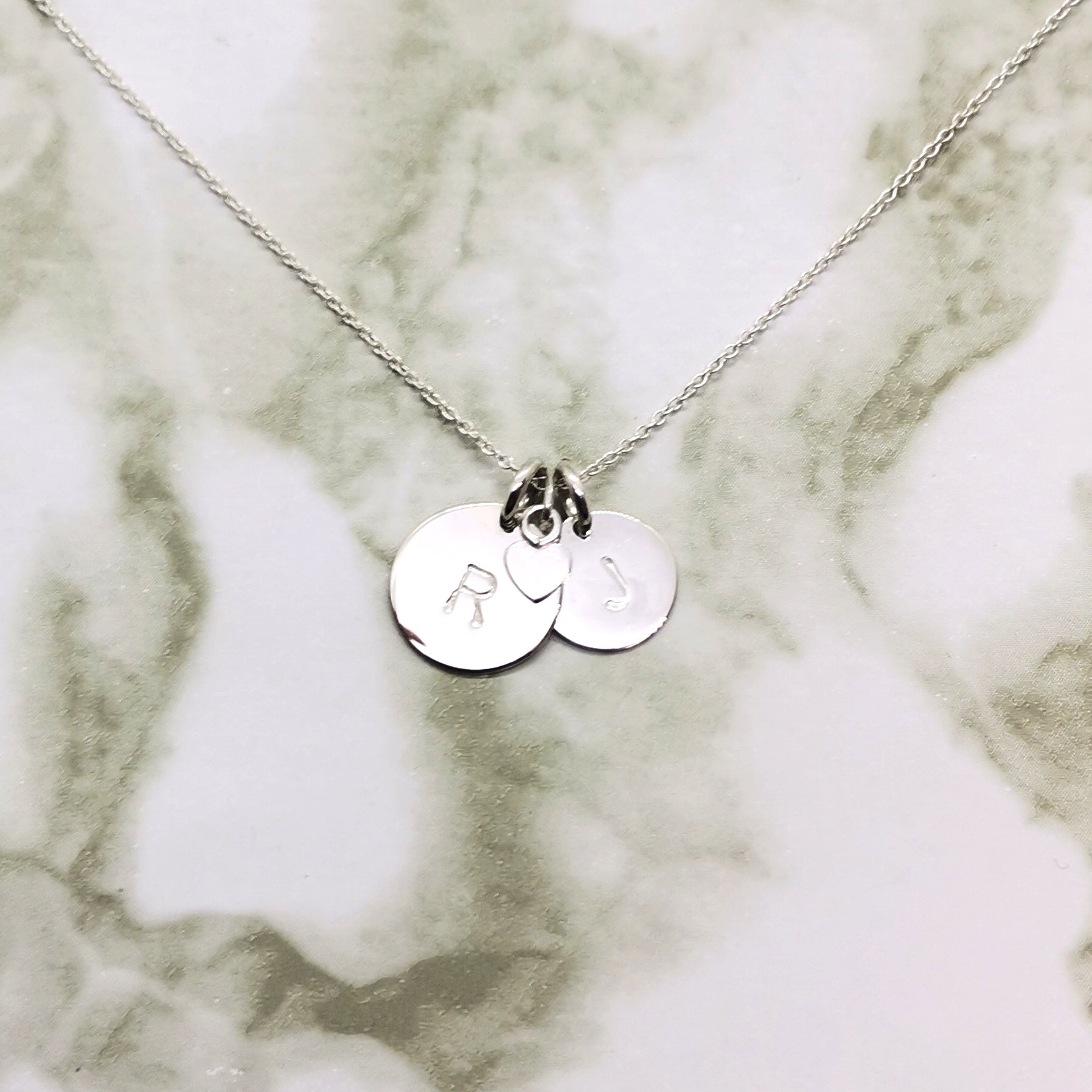 These handstamped 12mm and 10mm disc pendants are made in Sterling Silver.