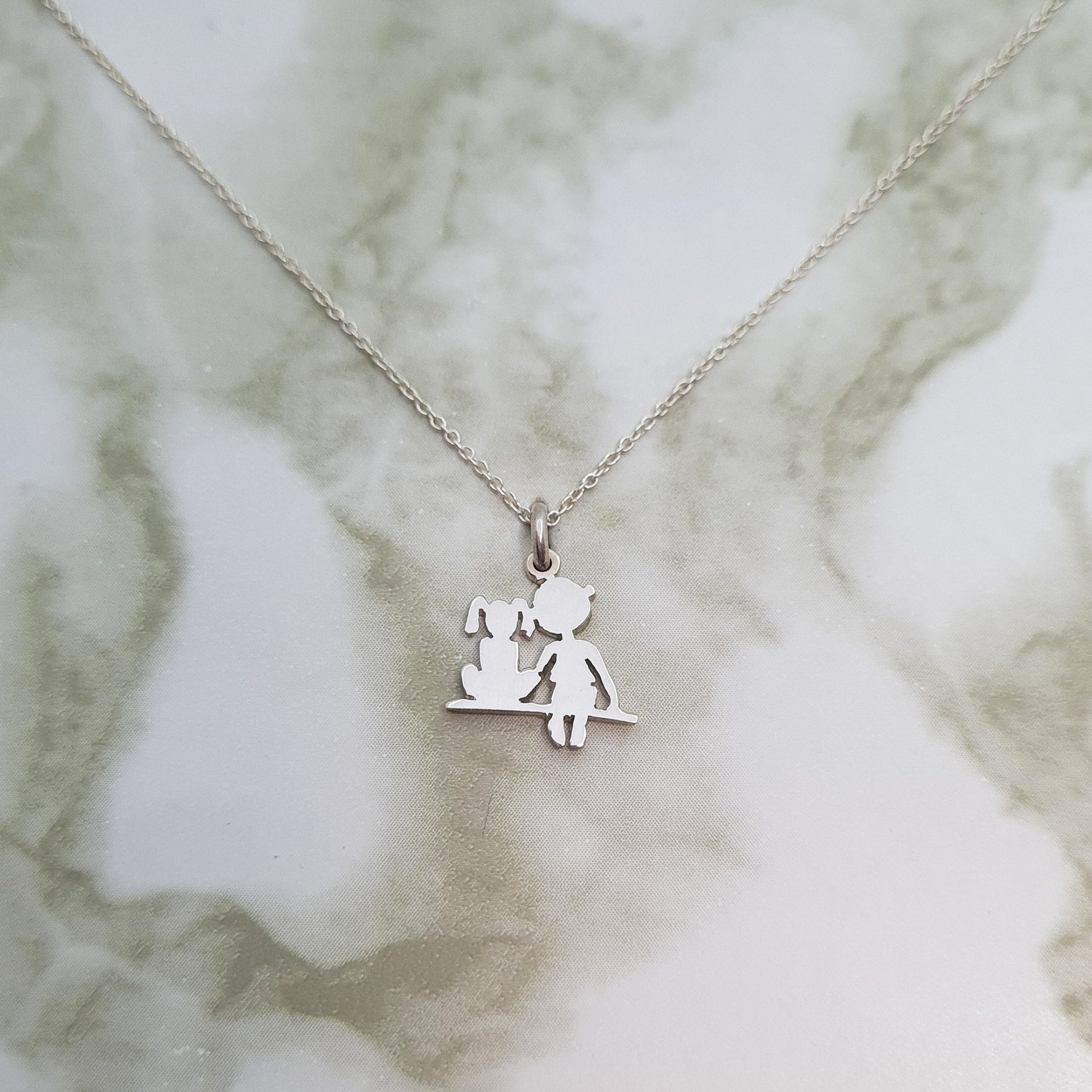 Handcrafted Sterling Silver Girl/Boy and Puppy Necklace