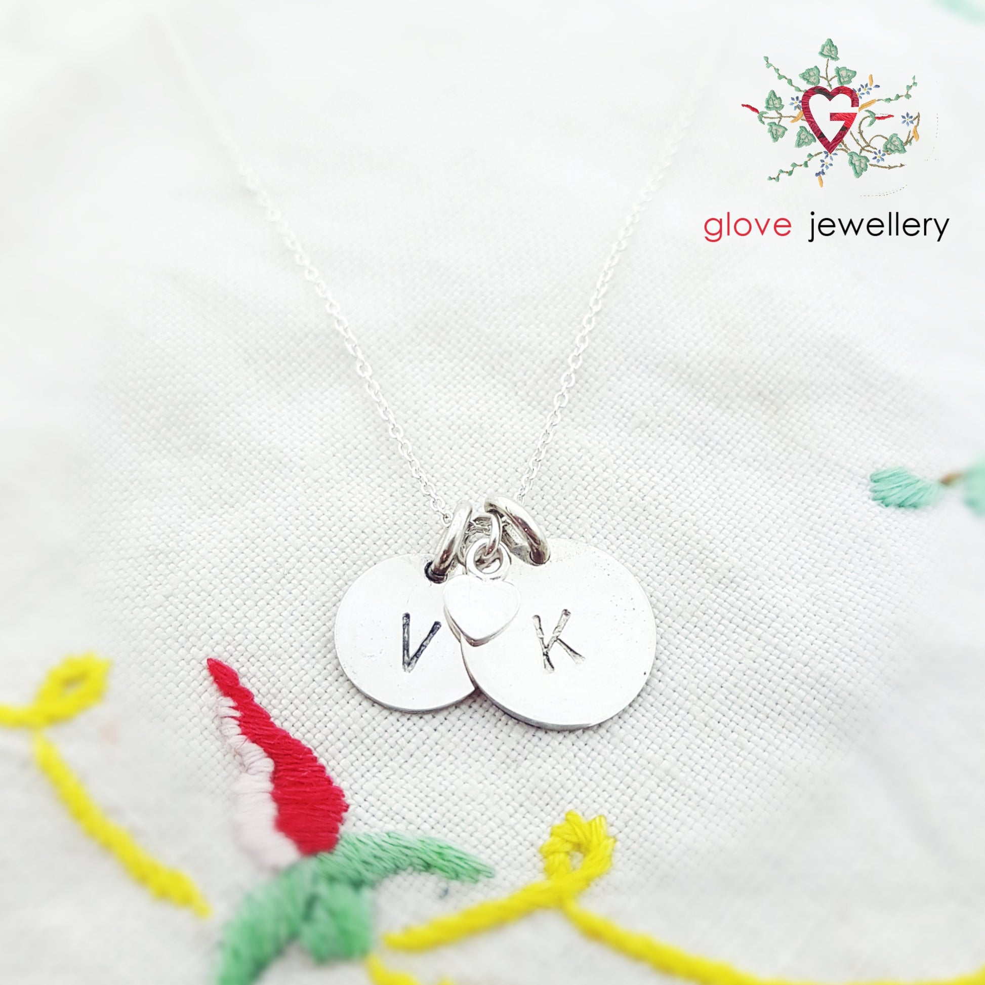 These handstamped 12mm and 10mm disc pendants are made in Sterlin Silver. Please specify the initials you want at the notes section with checkout.